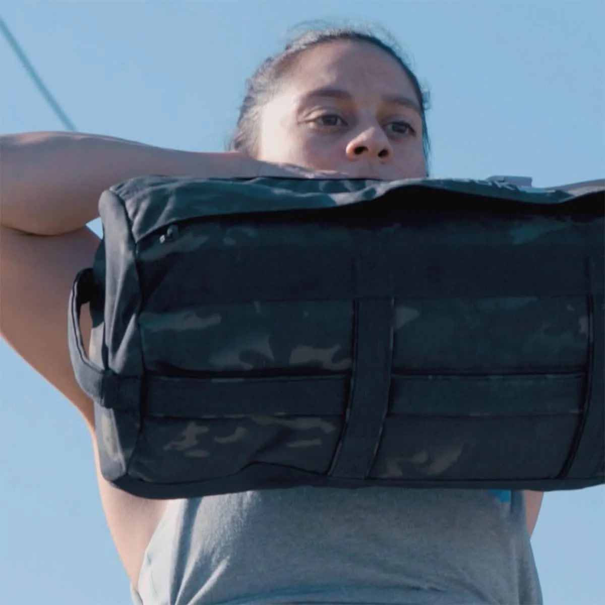 - Equipment needed: Rucksack with Ruck Plate (30LB/20LB) + Sandbags ( one very light one for single arm movements, one heavier one for pressing movements and pulling movements)